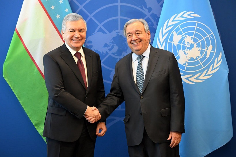 2025-09-24 92O‘zbekiston Respublikasi Prezidenti Shavkat Mirziyoyev 23-sentyabr kuni Nyu-York shahrida BMT Bosh Assambleyasining 80-sessiyasi doirasida tashkilot Bosh kotibi Antoniu Guterrish bilan uchrashuv o‘tkazdi