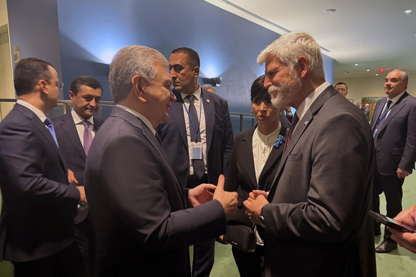 2025-09-24 82O‘zbekiston Respublikasi Prezidenti Shavkat Mirziyoyev BMT Bosh Assambleyasining 80-yubiley sessiyasi doirasida Chexiya Respublikasi Prezidenti Petr Pavel bilan uchrashuv o‘tkazdi